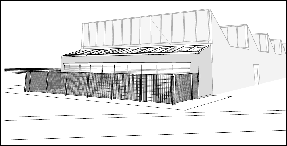 Ny skalmur på både den eksisterende bygning (1949), samt på tilbygningen.